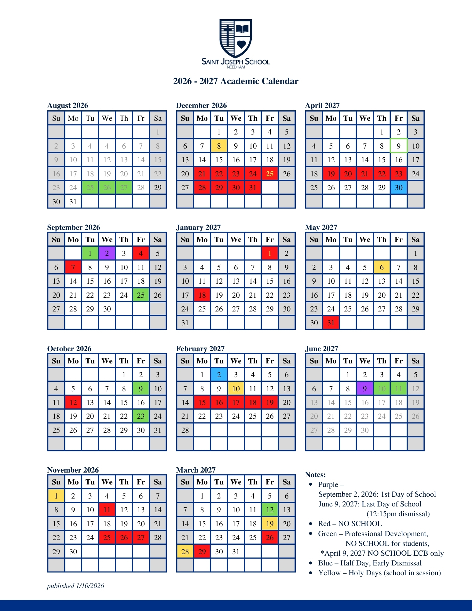 2026-2027 Academic Calendar